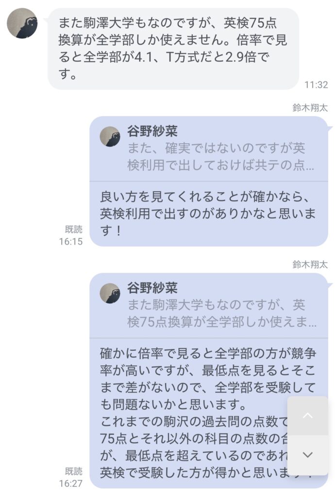 谷野: 鈴木先生は、先生というより「頼れる先輩」という感じで、大学生活の楽しい話もしてくれました。たまに「このままだと落ちるよ」ってストレートに言った後に、「あ、今の言い方は不適切だった、難しいかもね」って言い直したりする人間味が面白くて(笑)。前向きに取り組むモチベーションになりました。
